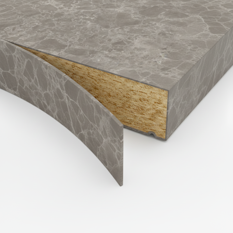 Vďaka vysokej odolnosti voči nárazom, vlhkosti a teplu zaručuje dlhodobú trvácnosť a profesionálne spracovanie. Hrana sa dodáva bez lepidla, čo umožňuje zvoliť najvhodnejší spôsob montáže podľa individuálnych potrieb.