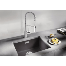 Táto profesionálna kuchynská batéria BLANCO spája moderný dizajn, vysokú funkčnosť a precízne spracovanie. Nerezová pružina umožňuje voľný pohyb spršky po celej oblasti drezu, pričom ju možno jednoducho zaaretovať do tela batérie. Vďaka praktickému riešeniu poskytuje maximálnu slobodu pri práci v kuchyni – ideálne pre bežné aj intenzívne používanie.