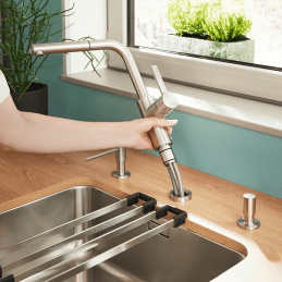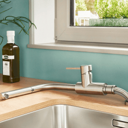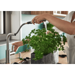 Vysoký výtok s výsuvnou sprškou – jednoduché napĺňanie hrncov, váz a oplachovanie riadu.