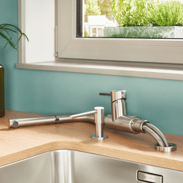 Tento model je ideálnou voľbou pre kuchyne s drezom pod oknom, kde sa vyžaduje elegantné sklopné riešenie, výsuvná sprška a úsporná prevádzka. Precízne spracovanie a certifikovaná kvalita značky BLANCO zaručujú dlhodobú spoľahlivosť aj štýlový vzhľad.