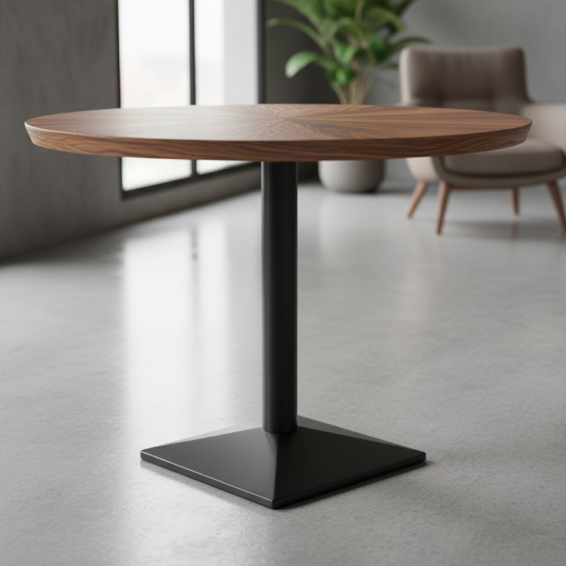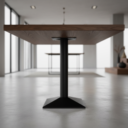 Robustná centrálna kovová stolová noha navrhnutá pre vysokú stabilitu a nosnosť, ideálna pre jedálenské, pracovné alebo reštauračné stoly. Vďaka svojej hmotnosti a pevnej konštrukcii spoľahlivo unesie aj väčšie stolové dosky.