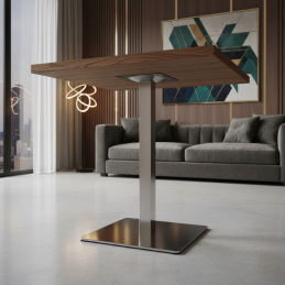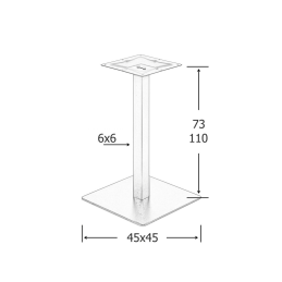 Dostupná je v dvoch výškach – 730 mm pre klasické sedenie alebo 1100 mm pre barové stoly. Je navrhnutá tak, aby uniesla stolové dosky rôznych materiálov a rozmerov.