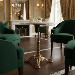 Dizajnová liatinová stolová podnož BAROKKO 90 v prevedení zlatá patina je ideálnou voľbou pre štýlové interiéry, kaviarne, reštaurácie či vintage priestory. Vďaka bohato zdobenému liatinovému základu prináša do priestoru eleganciu a tradičný remeselný charakter.