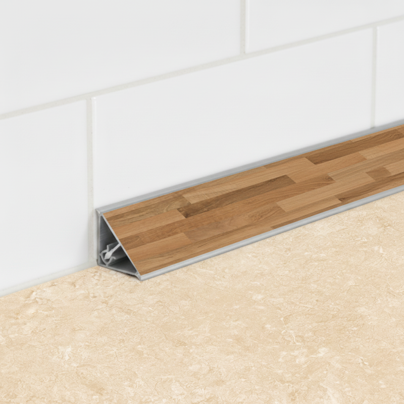 Pozostáva z dvoch častí – spodná časť sa naskrutkuje alebo nalepí na pracovnú dosku a horná sa následne zacvakne do spodnej. Tak vzniká pevné, presné a harmonické zakončenie v rovnakom dekore ako pracovná doska.