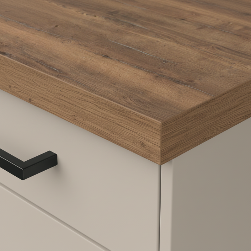 🪵 Rovná ABS hrana – estetický vzhľad, vyššia ochrana pred vlhkosťou.