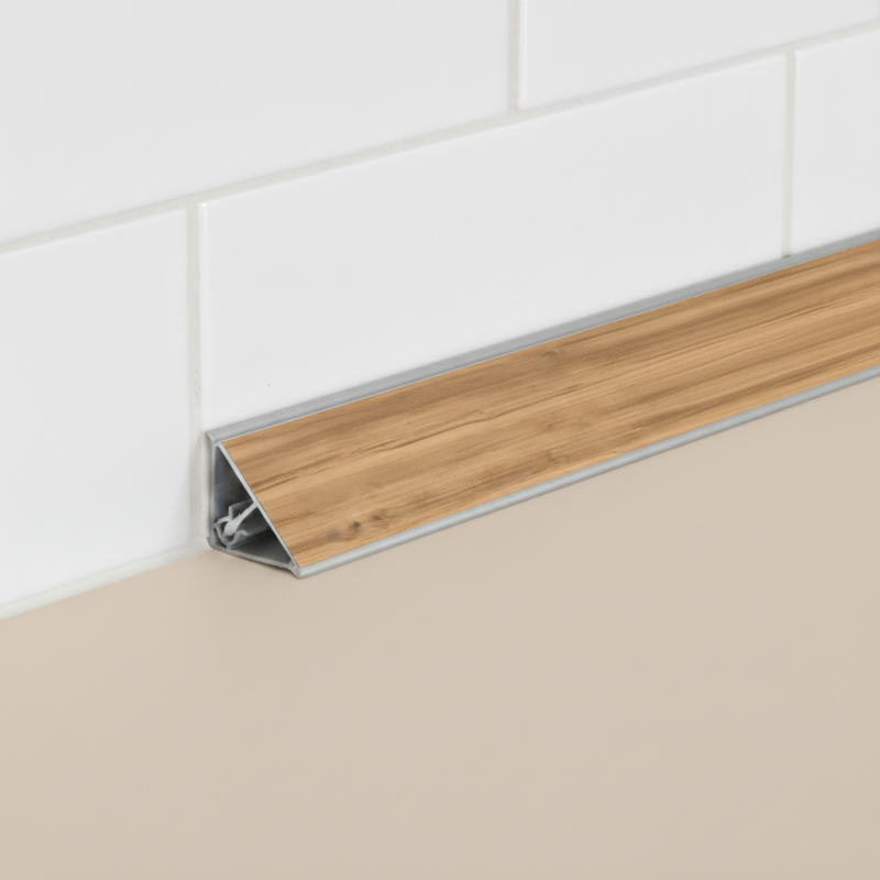 Pozostáva z dvoch častí – spodná časť sa naskrutkuje alebo nalepí na pracovnú dosku a horná sa následne zacvakne do spodnej. Tak vzniká pevné, presné a esteticky jednotné zakončenie v rovnakom dekore ako pracovná doska.