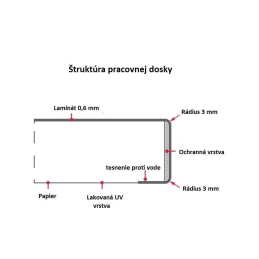Doska je vyrobená z kvalitnej drevotriesky s laminátovým povrchom EGGER, ktorý poskytuje vysokú odolnosť proti poškodeniu, oderu, teplu aj vlhkosti. Ideálna voľba pre kuchyne, jedálne, pracovné priestory či dizajnové interiéry.