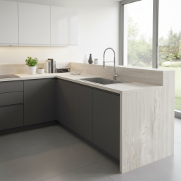 Pracovná doska EGGER Pinia Cascina (H1401 ST22) je dokonalou voľbou pre tých, ktorí hľadajú svetlý, svieži a prirodzený vzhľad dreva. Kombinuje jemné béžovo-sivé tóny s realistickou kresbou borovice, čím do interiéru prináša ľahkosť, čistotu a severský štýl.