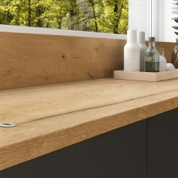 Pracovná doska Dub Halifax Prírodný od renomovaného výrobcu EGGER spája moderný dizajn s vysokou odolnosťou. Vďaka špeciálnej 3D povrchovej štruktúre verne imituje prirodzený vzhľad dreva – na pohľad aj na dotyk cítite jemné póry, reliéfy a linky typické pre dubové drevo.