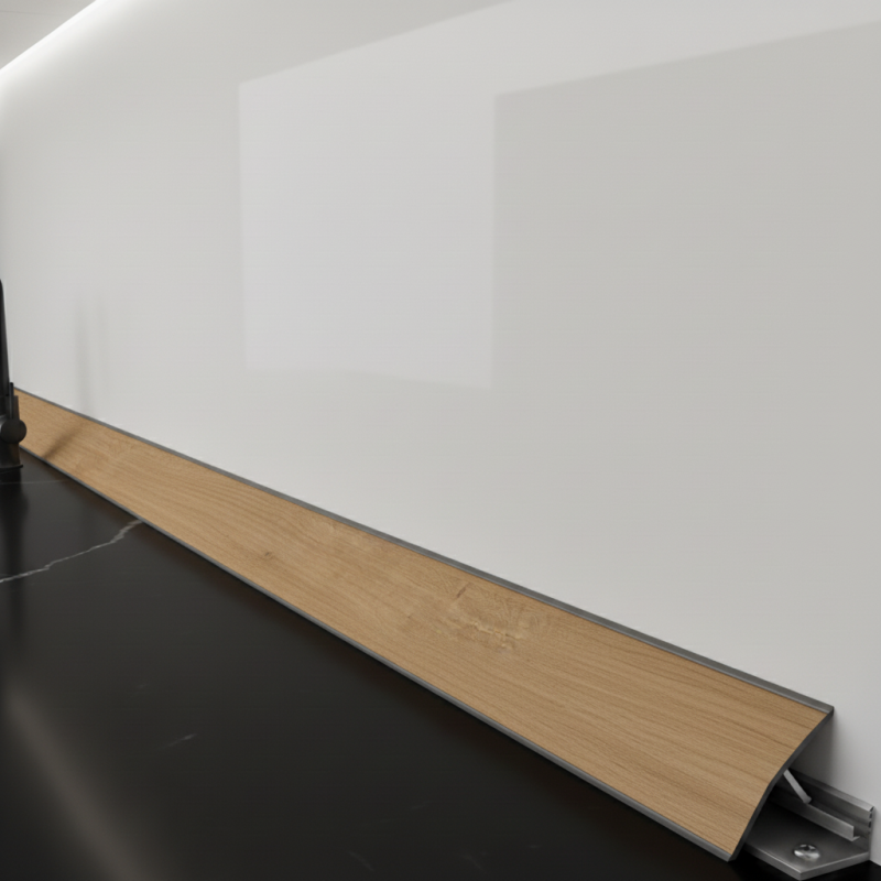 Pozostáva z dvoch častí – spodná časť sa naskrutkuje alebo nalepí na dosku a horná sa následne zacvakne do spodnej, čím vytvára čisté a estetické zakončenie v rovnakom dekore ako pracovná doska.