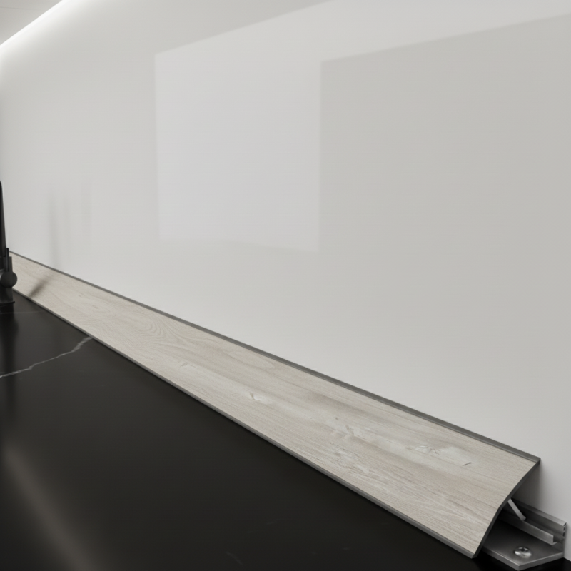Pozostáva z dvoch častí – spodná časť sa naskrutkuje alebo nalepí na dosku a horná sa následne zacvakne do spodnej, čím vytvára čisté a estetické zakončenie v rovnakom dekore ako pracovná doska.