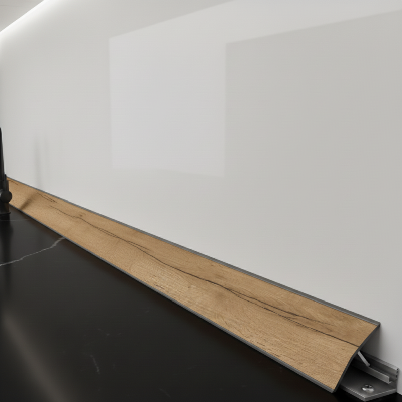 Pozostáva z dvoch častí – spodná časť sa naskrutkuje alebo nalepí na pracovnú dosku a horná sa následne zacvakne do spodnej, čím vytvára čisté a estetické zakončenie v rovnakom dekore ako pracovná doska.