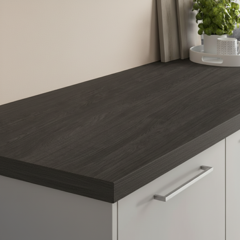 👉 Pracovná doska KRONOSPAN Carbon Marine / K016 SU je ideálnou voľbou pre tých, ktorí chcú moderný, elegantný a odolný povrch s tmavým dreveným charakterom – skvele ladí so svetlými aj industriálnymi interiérmi.