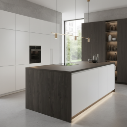 Tento dekor v odtieni tmavého uhlíkového dreva s jemnou štruktúrou dodáva priestoru charakter a kontrast, pričom si zachováva teplo dreva a luxusný dojem.