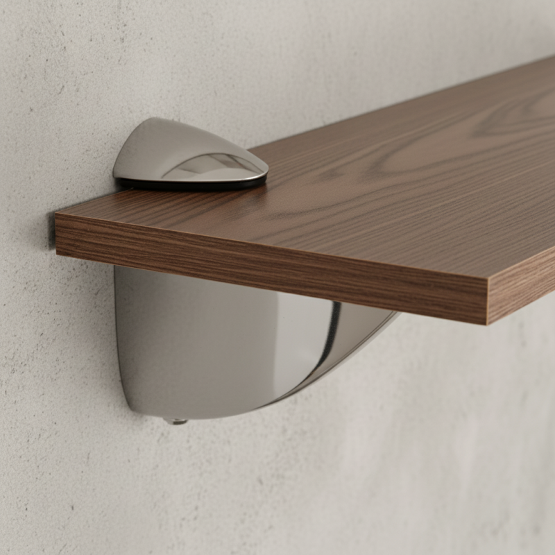 Držiak police je praktickým a elegantným riešením pre upevnenie sklenených, drevených aj laminovaných políc. Moderný oblý tvar v kombinácii s kvalitným spracovaním zabezpečuje nielen spoľahlivú funkčnosť, ale aj čistý a nenápadný vzhľad v interiéri.