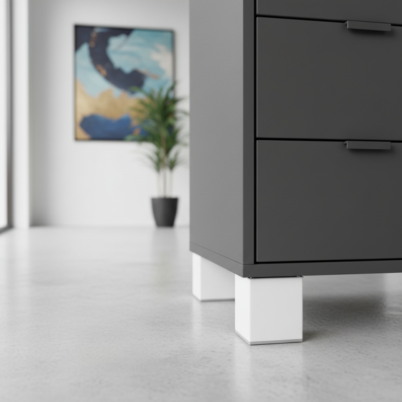 👉 Nábytková nožička XANA / Biela je skvelou voľbou pre každý moderný interiér, kde je potrebné spojiť dizajn, odolnosť a funkčnosť v jednej elegantnej nožičke.