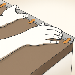 Pozostáva z dvoch častí – spodná časť sa naskrutkuje alebo nalepí na pracovnú dosku a horná sa následne zacvakne do spodnej. Tým vznikne pevné, presné a elegantné zakončenie v rovnakom dekore ako pracovná doska.