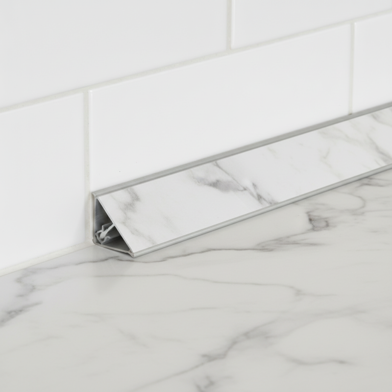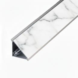 Luxusná a moderná tesniaca lišta KRONOSPAN v dekore Calacatta Olympus (K551 SU) je určená na profesionálne a precízne zakončenie pracovných dosiek. Lišta spoľahlivo utesňuje spoj medzi pracovnou doskou a stenou, čím účinne zabraňuje prenikaniu vody a nečistôt, a zároveň dodáva kuchyni elegantný a nadčasový vzhľad bieleho mramoru s jemným sivým žilkovaním.