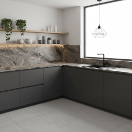 Pracovná doska EGGER Mramor Cipollino Šedý (F093 ST15) prináša do interiéru eleganciu pravého mramoru v modernom sivom odtieni. Povrch s jemnou kresbou a realistickou štruktúrou ST15 Smoothtouch Velvet dokonale napodobňuje prirodzený kameň, pričom si zachováva praktickosť a odolnosť laminátového povrchu.