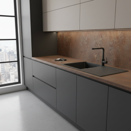 Pracovná doska EGGER Ferro Bronzový (F302 ST87) predstavuje spojenie industriálneho dizajnu a modernej elegancie. Povrch v odtieni teplého bronzu s jemnou metalickou štruktúrou dodá kuchyni či pracovnému priestoru luxusný, nadčasový vzhľad.