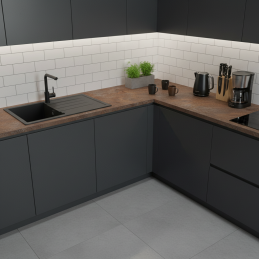 Doska je vyrobená z kvalitnej drevotriesky s laminátovým povrchom EGGER, ktorý zabezpečuje vysokú odolnosť proti oderu, poškriabaniu, vlhkosti aj teplu. Ideálna pre kuchynské linky, kancelárske priestory či moderné interiéry s industriálnym charakterom.