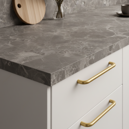 Pracovná doska EGGER Mramor Siena Šedý (F095 ST87) prináša elegantný vzhľad prírodného kameňa s jemnou kresbou sivého mramoru. Povrchová štruktúra ST87 Mineral Ceramic verne napodobňuje matný povrch brúseného kameňa – pôsobí realisticky, mimoriadne moderne a zároveň je príjemný na dotyk.