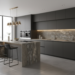 Pracovná doska v dekore Granit Magma šedý (F011 ST9) prináša autentický vzhľad prírodného kameňa s jemnou zrnitosťou a decentnými sivými odtieňmi. Povrchová štruktúra ST9 Smoothtouch Matt ponúka hodvábne matný efekt s príjemným dotykom, ktorý pôsobí elegantne a nadčasovo.