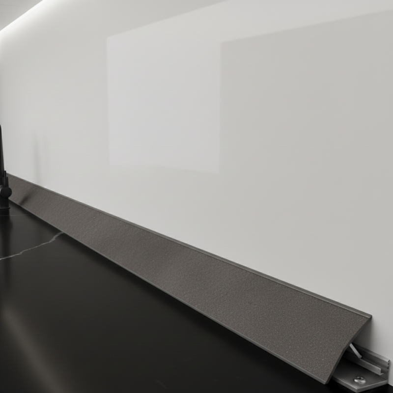Pozostáva z dvoch častí – spodná časť sa naskrutkuje alebo nalepí na pracovnú dosku a horná sa následne zacvakne do spodnej. Tak vznikne pevné, presné a estetické zakončenie v rovnakom dekore ako pracovná doska.