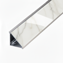Luxusná a moderná tesniaca lišta KRONOSPAN v dekore Calacatta Olympus (K551 SU) je určená na profesionálne a precízne zakončenie pracovných dosiek. Lišta spoľahlivo utesňuje spoj medzi pracovnou doskou a stenou, čím účinne zabraňuje prenikaniu vody a nečistôt, a zároveň dodáva kuchyni elegantný a nadčasový vzhľad bieleho mramoru s jemným sivým žilkovaním.
