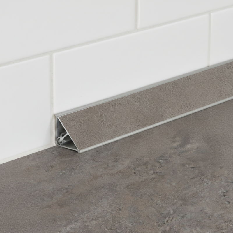 Moderná a elegantná tesniaca lišta KRONOSPAN v dekore Grey Albus (K540) je určená na profesionálne a precízne zakončenie pracovných dosiek. Lišta spoľahlivo utesňuje spoj medzi pracovnou doskou a stenou, čím účinne zabraňuje prenikaniu vody a nečistôt, a zároveň dodáva kuchyni sofistikovaný, kamenný vzhľad v odtieňoch svetlej až strednej sivej s jemnou textúrou.