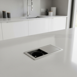 Elegantná a praktická vstavaná zásuvka VersaHit Mono je ideálnym riešením pre kuchyne, pracovné dosky, kancelárske stoly či moderný nábytok – jednoducho všade tam, kde potrebujete pohodlný, nenápadný a bezpečný prístup k elektrine.