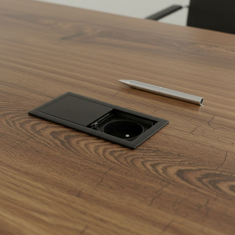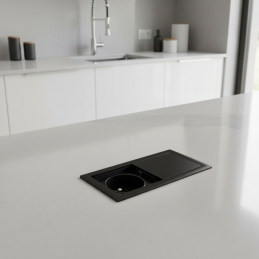 Elegantná a praktická vstavaná zásuvka VersaHit Mono v čiernej farbe je ideálnym riešením pre moderné kuchyne, pracovné dosky, kancelárske stoly či nábytok. Poskytuje komfortný a nenápadný prístup k elektrine všade tam, kde chcete zachovať čistý dizajn bez rušivých prvkov.