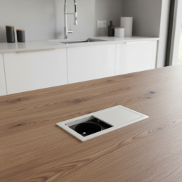 Elegantná vstavaná zásuvka VersaHit Mono v čistom bielom prevedení je moderným a praktickým riešením pre kuchyne, pracovné dosky, kancelárske priestory aj obytný nábytok. Umožňuje komfortný prístup k elektrine bez rušivých prvkov na povrchu a zachováva minimalizmus interiéru.