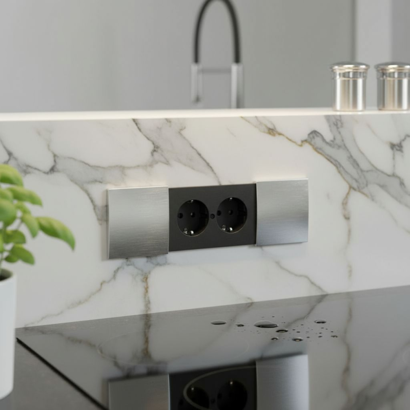 Ponúka 2× zásuvku 230V, ktoré sú prakticky umiestnené v kompaktnom a dizajnovo čistom tele.