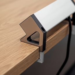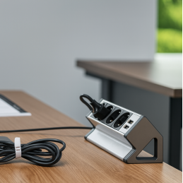 Zásuvka je určená na jednoduché uchytenie na zadnú hranu stola s hrúbkou od 6 do 41 mm, bez nutnosti výrezu v doske. Montáž prebieha pomocou priložených úchytov.