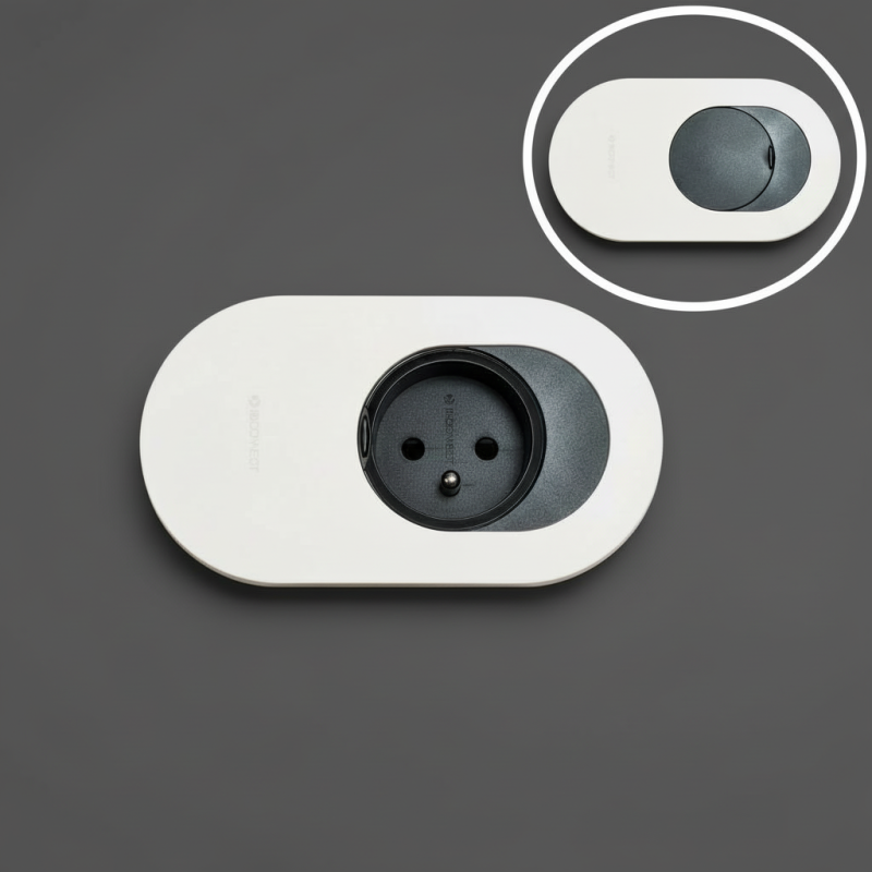 Dizajnová elektrická zásuvka ORBIT je moderné a elegantné riešenie pre každú domácnosť či kanceláriu. Vďaka svojmu oválnemu tvaru a minimalistickému prevedeniu pôsobí mimoriadne esteticky a zároveň ponúka praktické a bezpečné používanie. Kryt zásuvky je výsuvný – po uzavretí chráni zásuvku pred prachom a nečistotami.