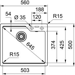 • Vonkajší rozmer drezu: 560 × 500 mm