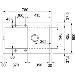 • Vonkajší rozmer drezu: 780 × 500 mm