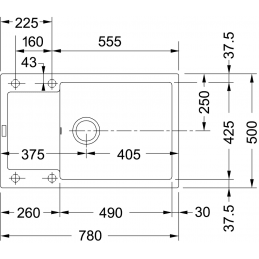• Vonkajší rozmer drezu: 780 × 500 mm