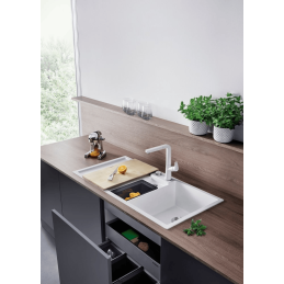 Tento model je ideálnou voľbou pre tých, ktorí hľadajú praktický, elegantný a odolný granitový drez. Vďaka inteligentne riešenej úložnej miske, priestrannej odkvapovej ploche a výpusti InFino® prináša komfort, estetiku a jednoduchosť údržby do každej modernej kuchyne.