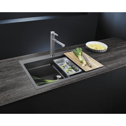 Blanco Etagon 8 je nadčasový jednovaničkový granitový drez z dizajnovej línie BLANCO ETAGON, ktorý ponúka perfektné spracovanie, moderný vzhľad a vynikajúci pomer ceny a kvality. Je navrhnutý tak, aby poskytoval maximálny komfort pri každodennej práci v kuchyni.