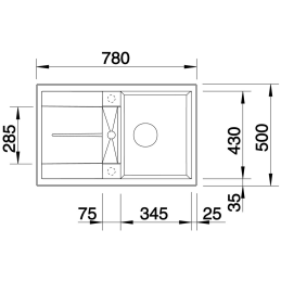 Vonkajšie rozmery drezu: 780 × 500 mm