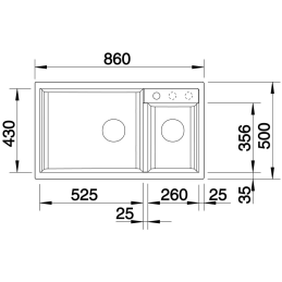 Veľkorysé rozmery drezu: 860 × 500 mm – dostatok priestoru aj pre plechy na pečenie.