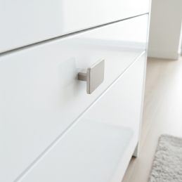 Úchytka je vyrobená z kvalitného kovu, ktorý zabezpečuje pevnosť, stabilitu a dlhú životnosť. Jednoduchý tvar so zaoblenými hranami poskytuje pohodlný úchop a nadčasový vzhľad.