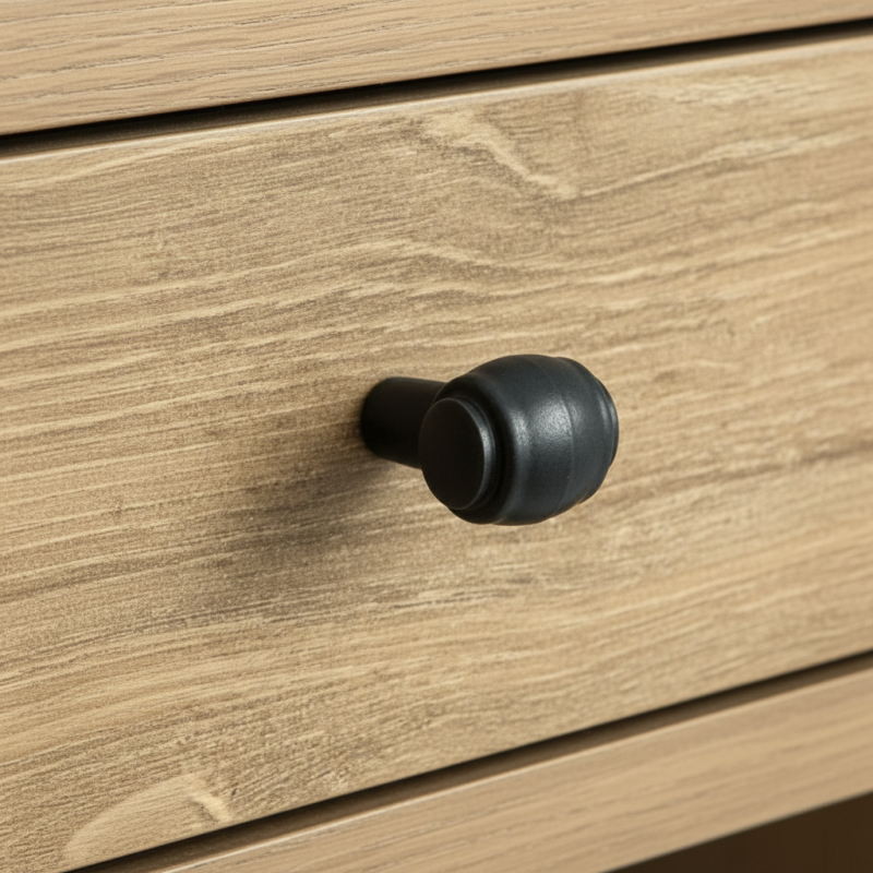 Knopka RUSTICALE v povrchovej úprave čierna patina je elegantný doplnok s jemne industriálnym, vintage a rustikálnym charakterom. Vďaka masívnemu kovovému prevedeniu a detailnému tvarovaniu pôsobí robustne, no zároveň veľmi dekoratívne. Je ideálnou voľbou na komody, skrinky, kuchynské dvierka či kúpeľňový nábytok.