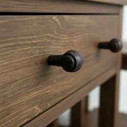 Tmavá patinovaná úprava dodáva knopke luxusný starobylý vzhľad, ktorý zvýrazní prirodzenú štruktúru povrchu a dokonale doplní drevo aj kovové prvky v interiéri.
