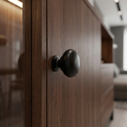 Elegantná nábytková knopka VALEA v prevedení čierna matná je jednoduchým a štýlovým doplnkom vhodným pre rôzne typy nábytku. Vďaka klasickému zaoblenému tvaru a matnému povrchu pôsobí moderne a nadčasovo, pričom sa ľahko kombinuje s drevodekormi, bielym aj tmavým nábytkom.