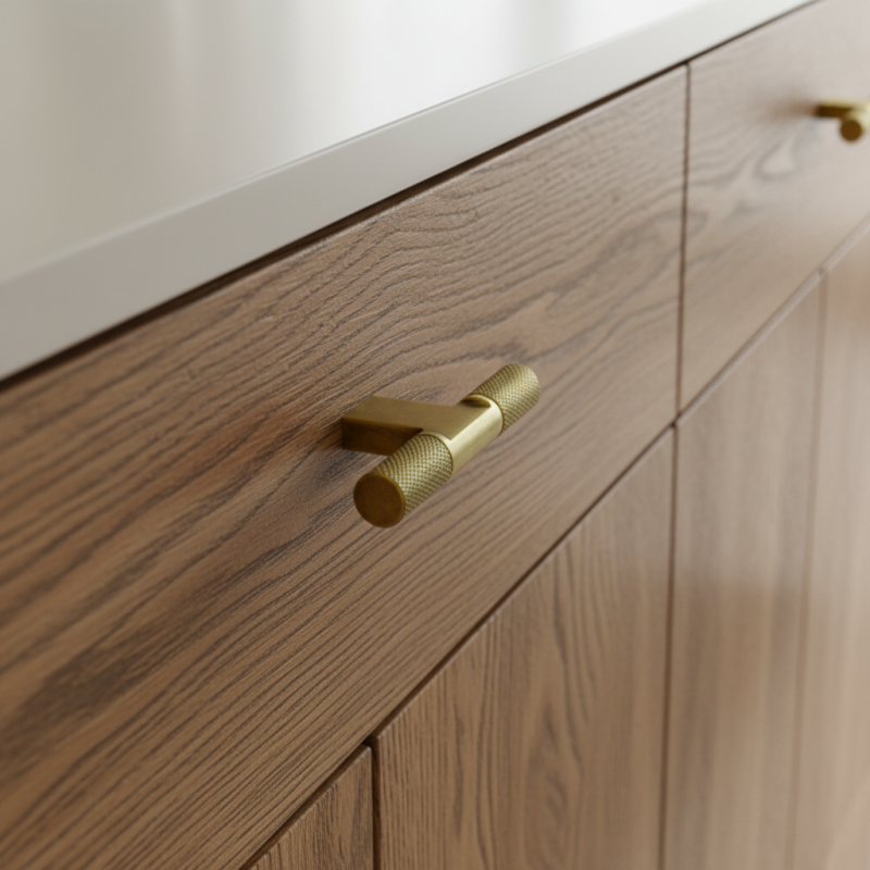 Štýlová knopka INDUST DUO v povrchovej úprave starozlatá je ideálnym doplnkom pre interiéry, kde chcete skombinovať industriálny dizajn s teplým, elegantným nádychom. Ryhovaný povrch dodáva úchytke autentický industriálny charakter a zároveň zabezpečuje príjemné uchopenie.