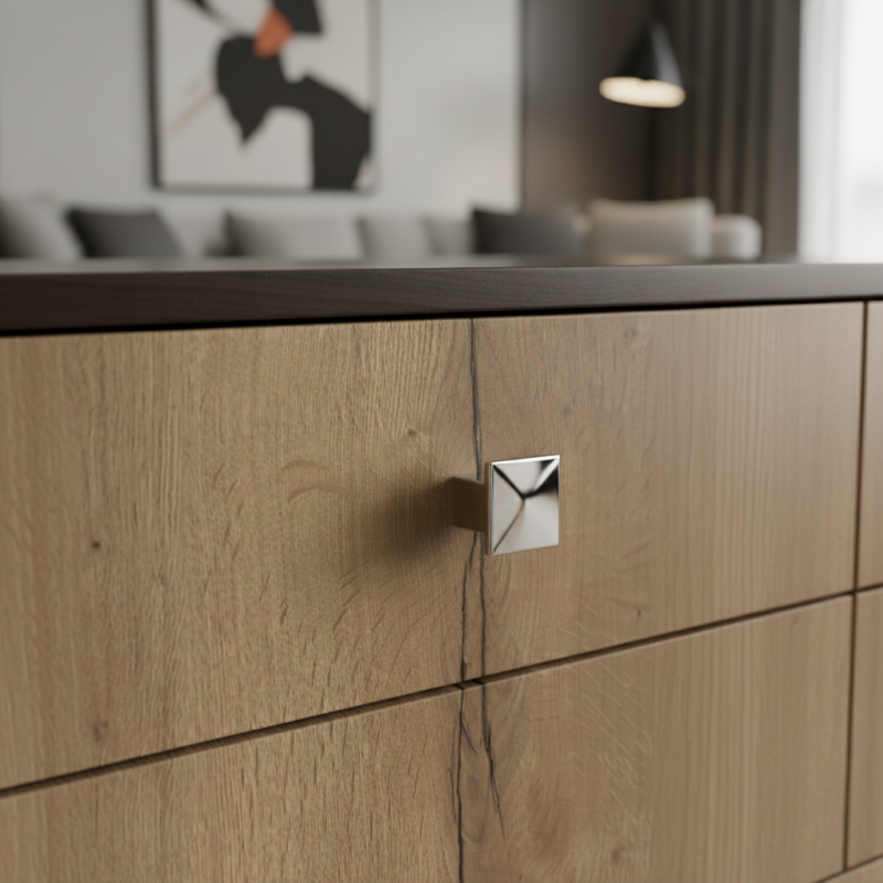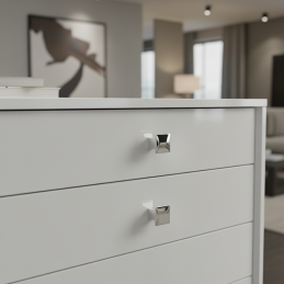 Úchytka knopka AXON v lesklom chrómovom prevedení predstavuje elegantný a nadčasový prvok, ktorý dodá vášmu nábytku luxusný vzhľad. Hranatý tvar s čistými líniami pôsobí moderne, zatiaľ čo vysokolesklý povrch dodáva priestoru výnimočný vizuálny akcent. Vďaka precíznemu spracovaniu a pevnej konštrukcii je vhodná do kuchyne, kúpeľne, obývacej izby aj kancelárskeho nábytku.