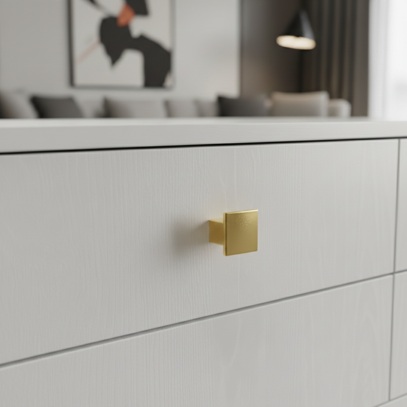 Úchytka knopka AXON v elegantnom zlatom matnom prevedení predstavuje sofistikovaný doplnok pre moderný aj klasický interiér. Matná zlatá povrchová úprava pôsobí luxusne, no zároveň jemne a decentne, vďaka čomu sa perfektne hodí do kuchýň, kúpeľní, obývacích priestorov či spální. Hranatý dizajn podčiarkuje čisté línie nábytku a dodáva mu nadčasový charakter.